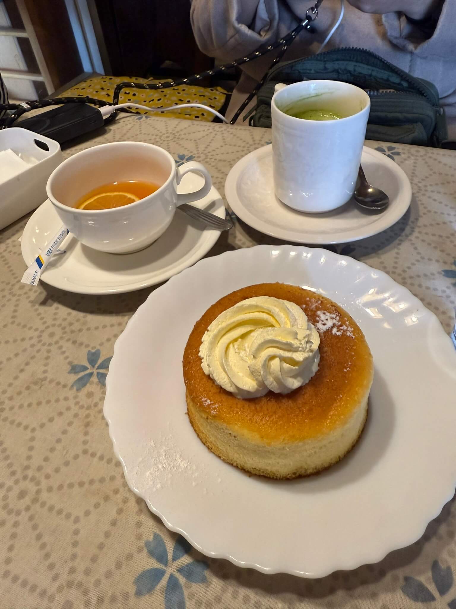 We ordered a Matcha Ore (600 yen), Lemon Tea (500 yen), and a Soufflé Pancake (600 yen). The drinks were especially comforting in the cold, but the highlight was definitely the pancake. While not the super jiggly kind you might expect, it was still soft, fluffy, and not overly sweet—just the way I like it. I’d absolutely recommend giving it a try if you stop by.